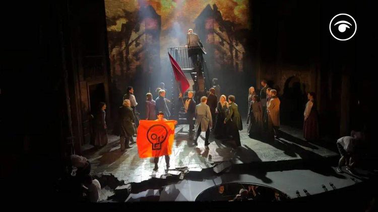 Just Stop Oil protesters halted a performance of Les Miserables at the Sondheim Theatre in London’s West End on Wednesday night.