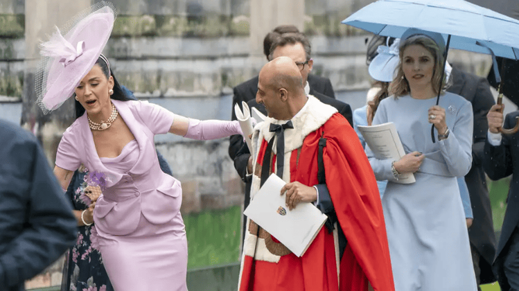 US singer Katy Perry appeared to lose her footing as she departed the King and Queen’s coronation service.