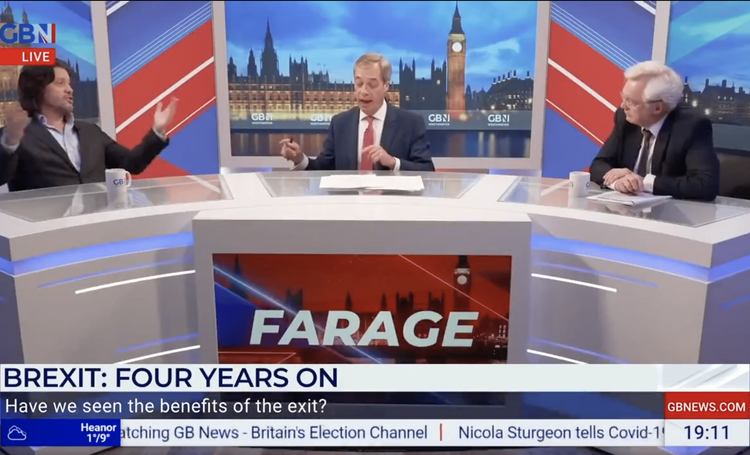 European Movement chair Mike Galsworthy went toe to toe with former UKIPer Nigel Farage and David Davis for a Brexit anniversary-themed Rumble in the Jungle on GB News.