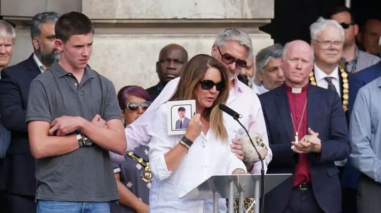 Mr Webber’s mother, Emma Webber, fought back tears as she told the crowd that the “monstrous individual” responsible for the deaths “will not define us”.