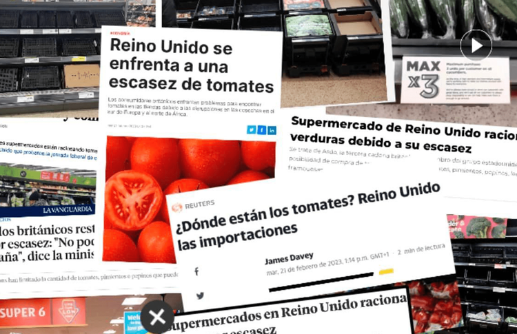 In France, BFM TV, a 24-hour rolling news and weather channel, ran a segment on Brits being rationed to two tomatoes per person.