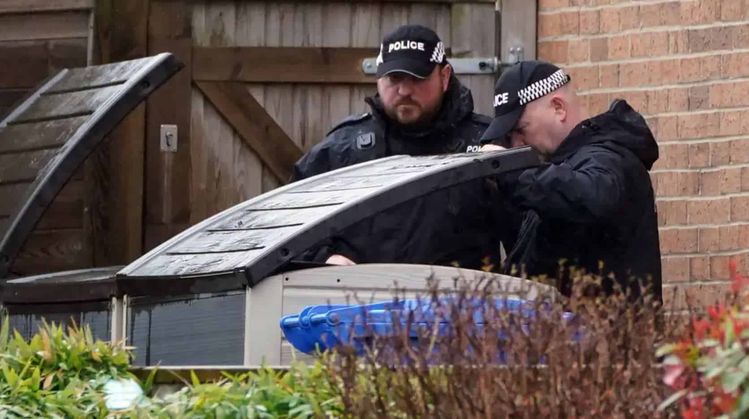 In the afternoon, officers could be seen in the back garden, one of whom was carrying two spades, although it is unclear why the officer was carrying them.