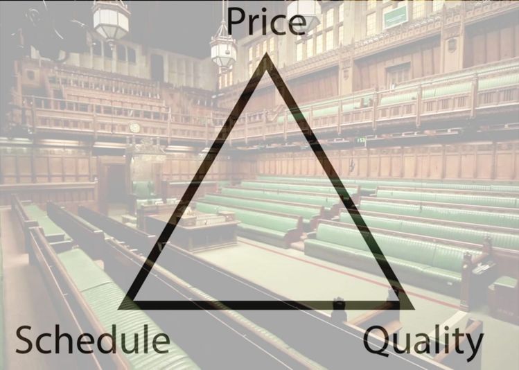 Using the “Iron Triangle” model – price, schedule, quality- he explains how the “absolutely unbreakable rule” is that you can only have two things from the triangle and never all three.