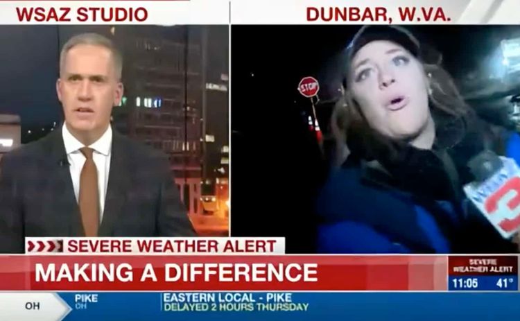 Tori Yorgey, from WSAZ, was covering a water main break in the city of Dunbar in West Virginia on Wednesday night when a car drove into her from behind, knocking both her and her camera to the ground.