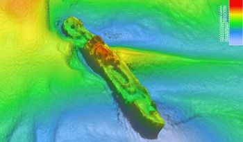 These photographs show the ghostly wreck of a steamship which sank on Christmas Eve 117 years ago. Lodged in the sands of the Severn Estuary, the remains of the boat were captured by sonar imagining for the first time. It was thought to be cargo vessel The Brunswick, which overturned in deep fog when she ran aground on a sandbank. Sailors who escaped with their lives eventually managed to retrieve the bodies of three men who were in the cabins...