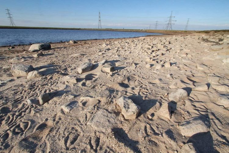 Blackstone Edge Reservoir, which rests on the borders of Rochdale in Manchester and Calderdale in Yorkshire, has left sand, sediment and grit in the wake of Britain’s scorching weather.