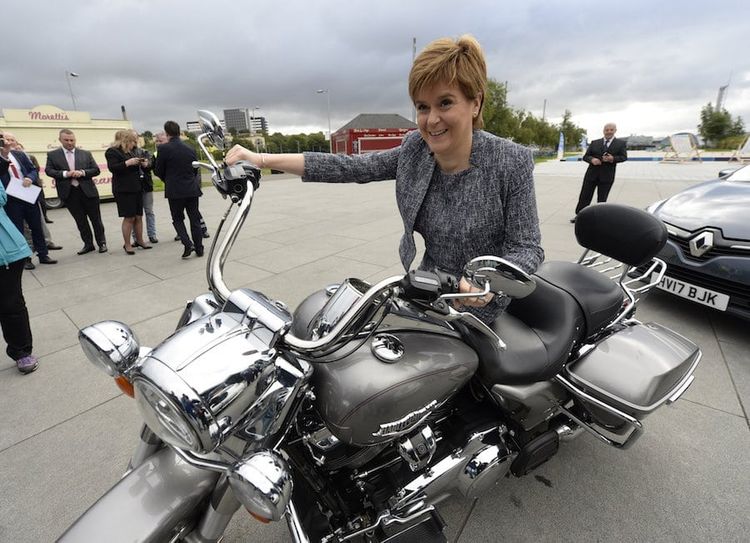 First Minster Nicola Sturgeon was at the Riverside Museum, Glasgow, Scotland, to launch a £60m innovation fund to develop a low carbon infrastructure, such as electric battery capacity and electric vehicle charging in Scotland.