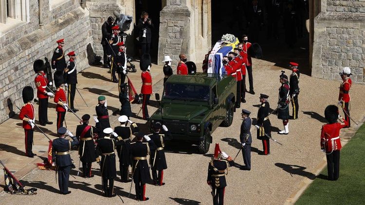 It had been lifted into place by Grenadier Guardsmen onto the rear of the dark bronze green Land Rover Defender hearse the duke designed himself.