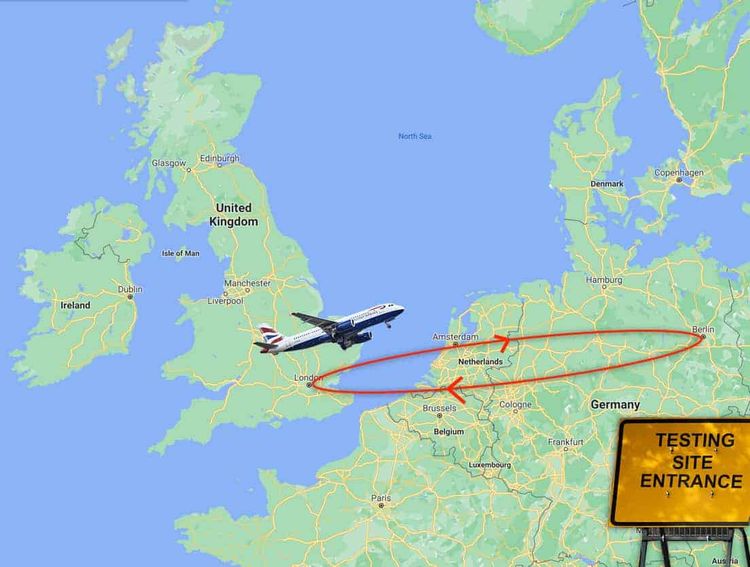For the cost of a private health test – currently priced at £125 – one social media user has suggested you could fly to Germany in the morning, get tested in the airport, have a result with 30 minutes and fly home after lunch.