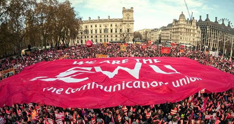 On Friday, thousands of Royal Mail employees gathered in front of Parliament to mark a new strike in the increasingly contentious conflict over jobs, wages, and working conditions.