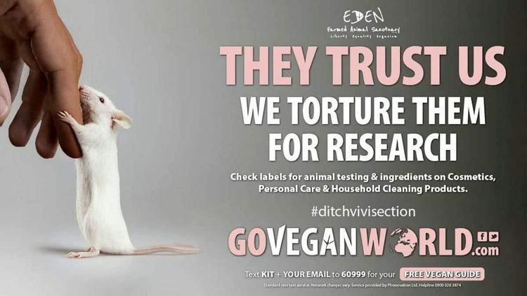 Go Vegan World said that the ad was designed to remind the public that animals used in research had the capacity to experience and feel pain.