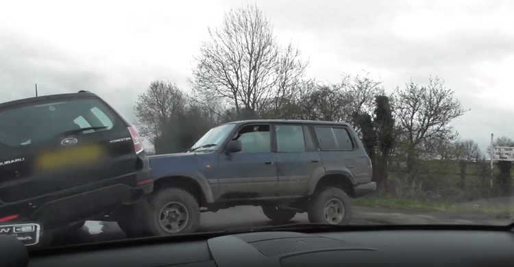 This is the frightening moment animal activists were repeatedly RAMMED by a 4×4 while driving to intercept a hunt.