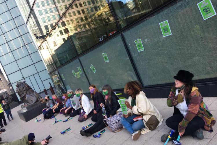 Climate change activists said they smashed the windows of HSBC’s London headquarters over its links to the fossil fuel industry.