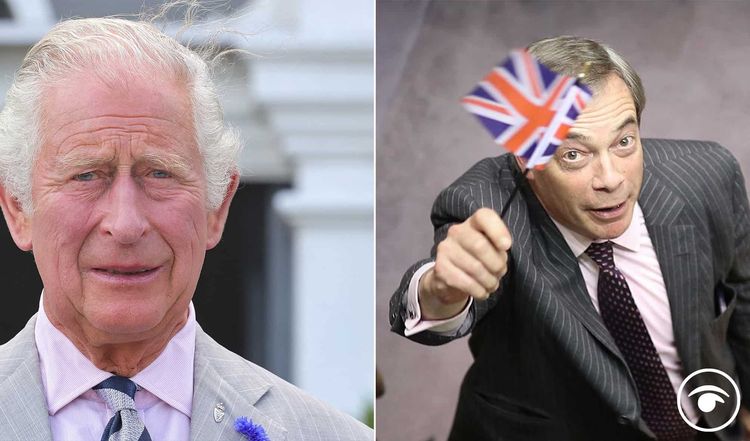 The video sees Farage at Green Park, London, where flowers have been laid for the deceased monarch.