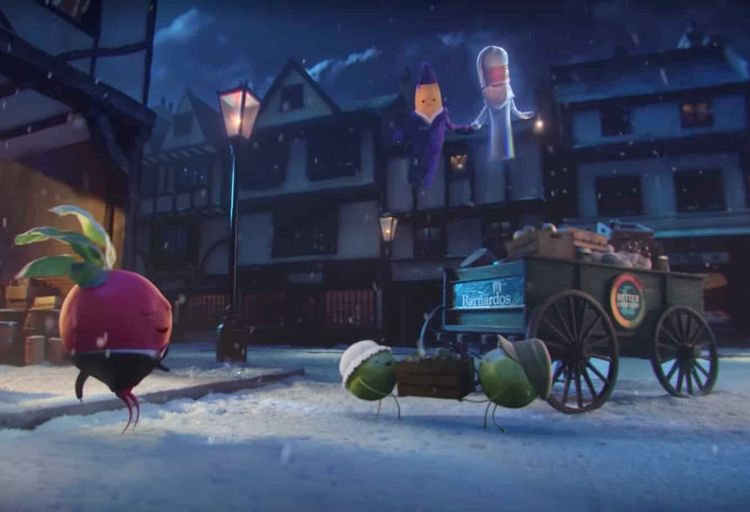 The ad, styled on A Christmas Carol by Charles Dickens, features returning favourite Kevin the Carrot alongside new character “Ebanana” Scrooge and the voice of Rashford.