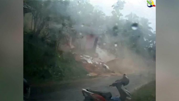 This is the moment trees were uprooted and homes crushed in a massive LANDSLIDE – which left the cameraman running for his life.