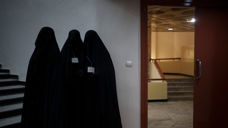 On Sunday, just over a dozen women staged a protest outside the ministry, holding up signs calling for the participation of women in public life.