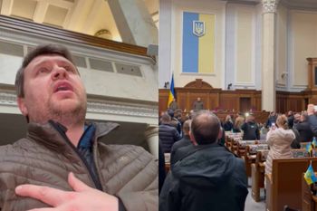 Ukrainian MPs gathered in the nation's parliament on Thursday and defiantly sung the national anthem.