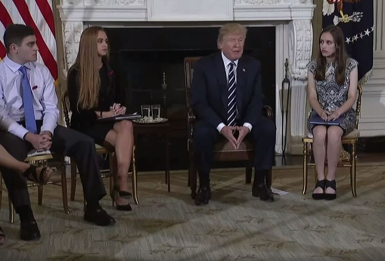 Donald Trump sat surrounded by pupils and parents who prayed and wiped away tears as they spoke.