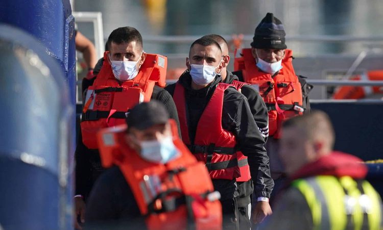 Photographs taken on Monday morning showed another group of migrants, clad in life jackets and face masks, being brought into Dover by Border Force officials.