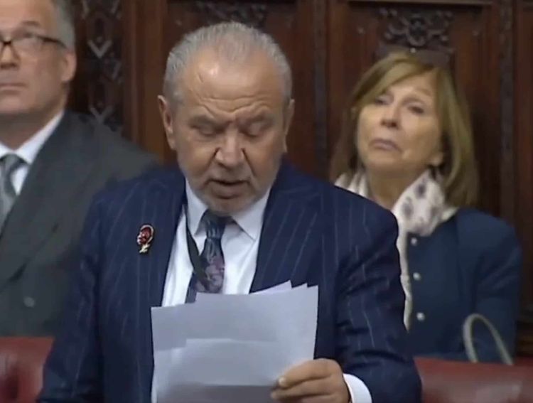Alan Sugar used an impassioned speech in the House of Lords to call for jail sentences for those responsible for the turmoil caused by Brexit.