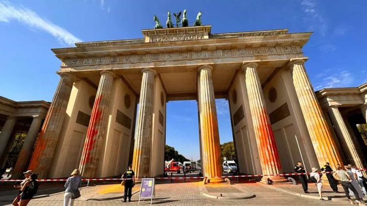 German climate activists sprayed orange paint onto Berlin’s Brandenburg Gate in an attempt to urge the German government to take more urgent action against climate change.