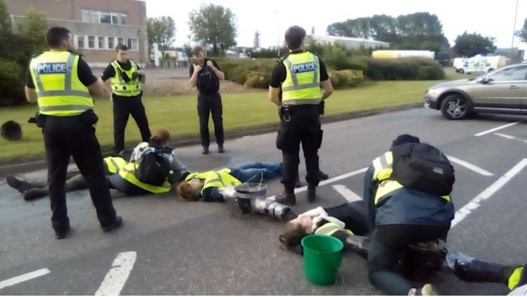 This action is the latest in an apparent escalation by the group in the past week, with another blockade of the same road taking place last week, along with similar action at the Nustar terminal in Clydebank and two This is Rigged members scaling the Kelpies sculpture near Grangemouth on Sunday.