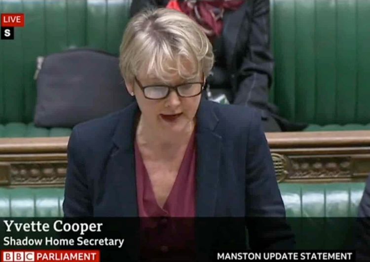 Yvette Cooper kicked off a fiery debate in the House of Commons by welcoming her counterpart back from her “expensive interior design tour” to Rwanda.