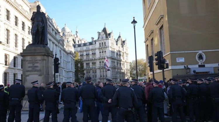 Clashes broke out as police attempted to stop them from reaching Whitehall but the group pushed through, with some shouting “let’s have them” as officers hit out with batons.