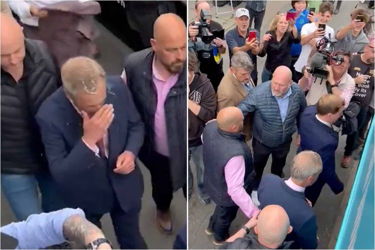 But in a repeat of the milkshake sagas that dogged Farage in 2019, he didn’t manage to escape the event completely dry.