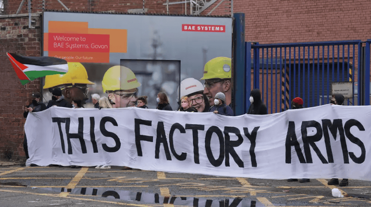 Organisers said more than 1,000 workers and trade unionists demonstrated outside BAE Systems sites, as well as the London offices of the Business and Trade department.
