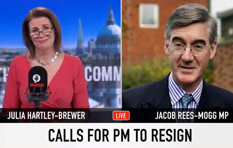 Julia Hartley-Brewer came to blows with Jacob Rees-Mogg this morning as the Tory MP defending Boris Johnson on TalkRADIO.