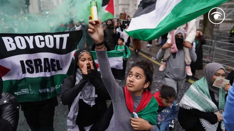 A small group of pro-Palestinian protesters held a separate demonstration in central London on Saturday calling for “Muslim armies” to rescue the people of Palestine.