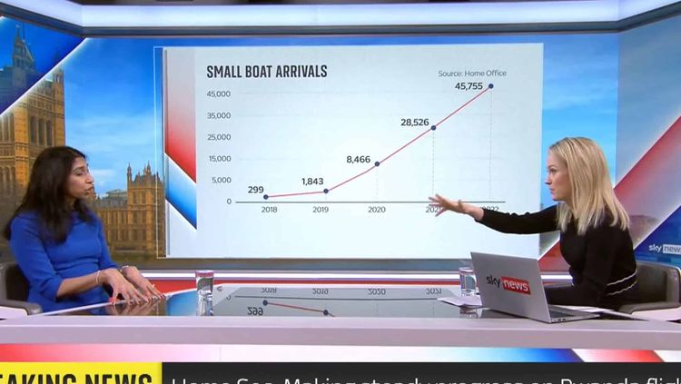 Sophie Ridge asked the home secretary Suella Braverman whether it was ‘a bit weird’ that her ‘dream’ is to deport asylum seekers to Rwanda in a car crash interview Sunday morning.
