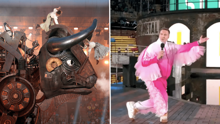 The ceremony included Red Arrows and raging bulls which rumbled around Alexander Stadium.