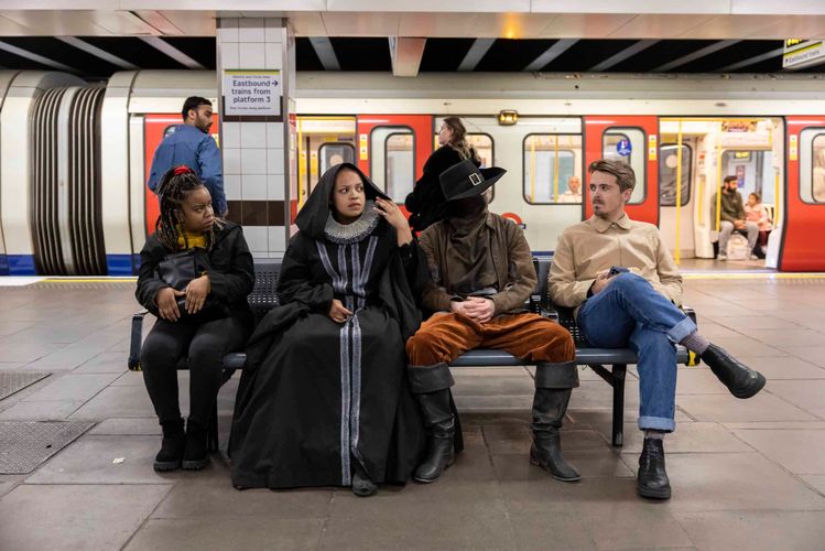Draped in cloaks and wearing boots with spurs, the likes of Guy Fawkes and his fellow plotters mingled with confused workers en route.