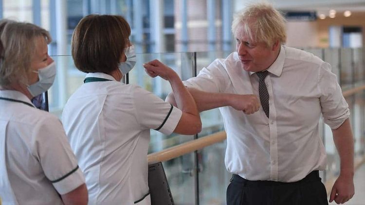 A maskless prime minister turned down a light-hearted offer of an endoscopy when he visited a hospital to praise staff for getting their Covid-19 vaccine booster jabs.