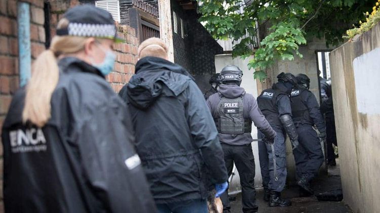 The home secretary was on the scene during an NCA swoop in Woodford Green and Bushwood, east London, on Wednesday.