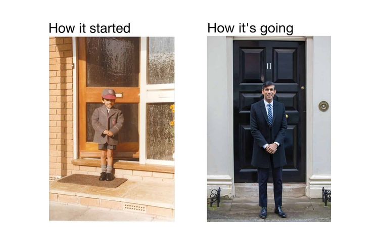 An emotional Rishi Sunak celebrated his one year anniversary as Chancellor of the Exchequer this weekend, posting a ‘how it started/ how it’s going’ tweet in a bid to pull on the heartstrings of his already smitten devotees.