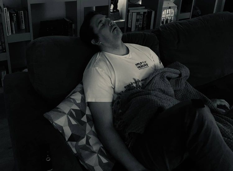 Felicity Cornelius-Mercer shared a photo on social media on Saturday of her husband, Plymouth Moor View MP Johnny Mercer, sitting on a sofa with his head thrown back, apparently in a deep sleep.