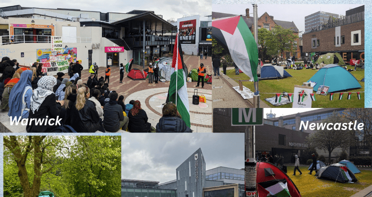 Students in Leeds, Newcastle and Bristol set up tents outside university buildings on Wednesday in protest against the war in Gaza.