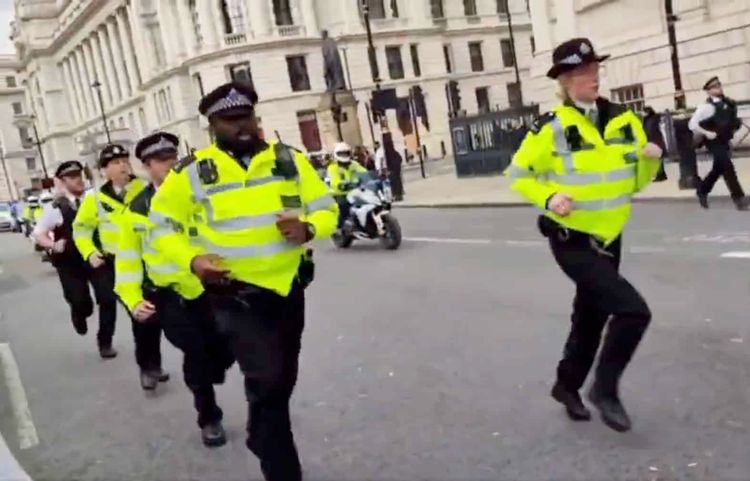 A video uploaded to social media showed more than 30 police officers either cycling or running in front, alongside or behind Rishi Sunak’s car and security detail as it makes its way through central London.