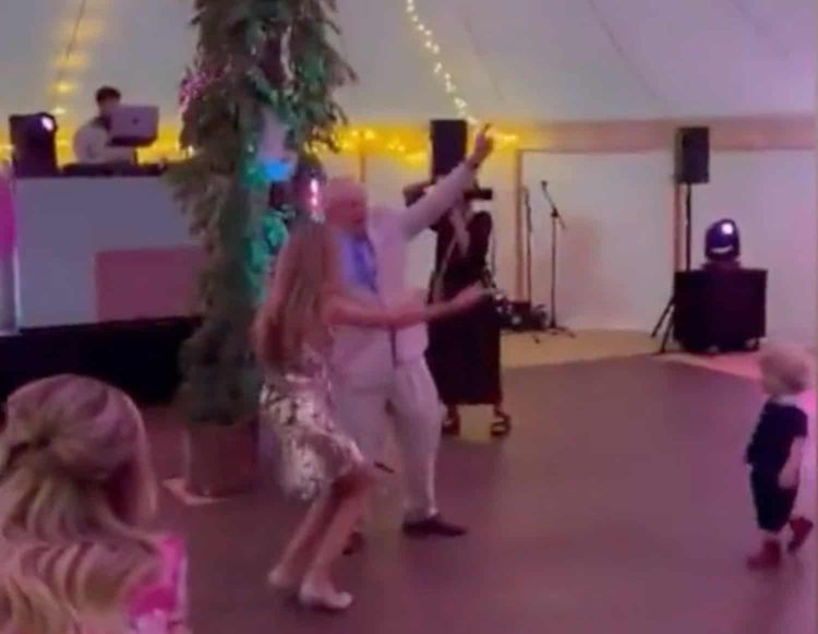 The video, obtained by political blog Guido Fawkes, shows Boris Johnson dressed in a pale suit awkwardly flailing his limbs beside his current wife Carrie at their party – held a year on from their nuptials because of the pandemic – at the country estate of a major Tory donor.