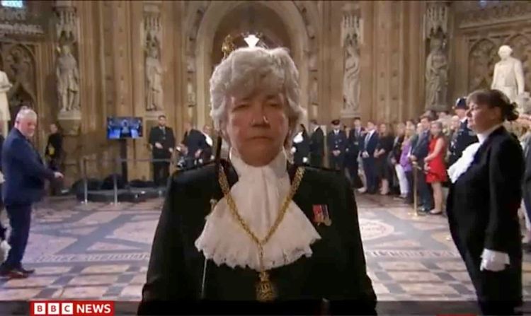 The usual procession took place before the speech was read out, led by senior parliamentary and government officers, including the Lord Chancellor, the Lord Speaker of the House of Lords and the Lord Privy Seal.