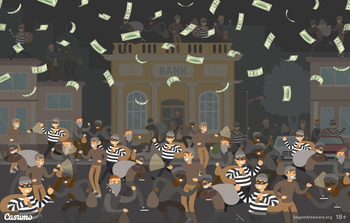 We nortmally associate the sight of a one-armed bandit with a chance to pocket some extra dosh. Not so in this baffling puzzle, as a one-limb crim looks to make off with his swag bag. It’s chaos in the streets in this latest puzzle, and while a gang of thieves haul away their cash from the bank vault, only a single perpetrator has truly committed one-armed robbery. Can you spot the one-armed bandit in this bank-heist blowout? In a sea...