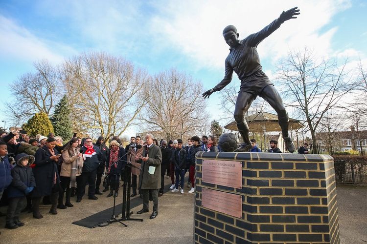 Lord Herman Ouseley gives a speech at the unveiling of a statue of the late former Leyton Orient and Real Madrid player, Laurie Cunningham, who was the first black player to play for England at senior level. The statue was unveiled in Coronation Gardens in Leyton, East London. November 30 2017Statue unveiled of the late former Leyton Orient and Real Madrid player, Laurie Cunningham, who was the first black player to play for England at senior level. The statue was unveiled in Coronation Gardens in Leyton, East London. November 30 2017Statue unveiled of the late former Leyton Orient and Real Madrid player, Laurie Cunningham, who was the first black player to play for England at senior level. The statue was unveiled in Coronation Gardens in Leyton, East London. November 30 2017Sergio Cunningham at the unveiling his father’s statue. The statue of the late former Leyton Orient and Real Madrid player, Laurie Cunningham, was unveiled in Coronation Gardens in Leyton, East London. November 30 2017Statue unveiled of the late former Leyton Orient and Real Madrid player, Laurie Cunningham, who was the first black player to play for England at senior level. The statue was unveiled in Coronation Gardens in Leyton, East London. November 30 2017