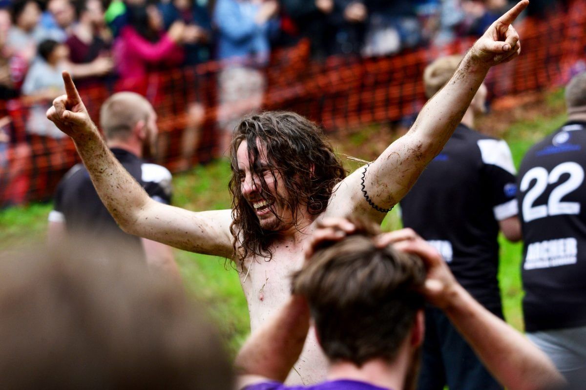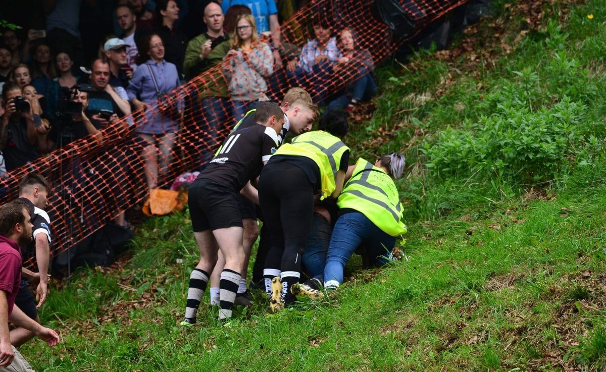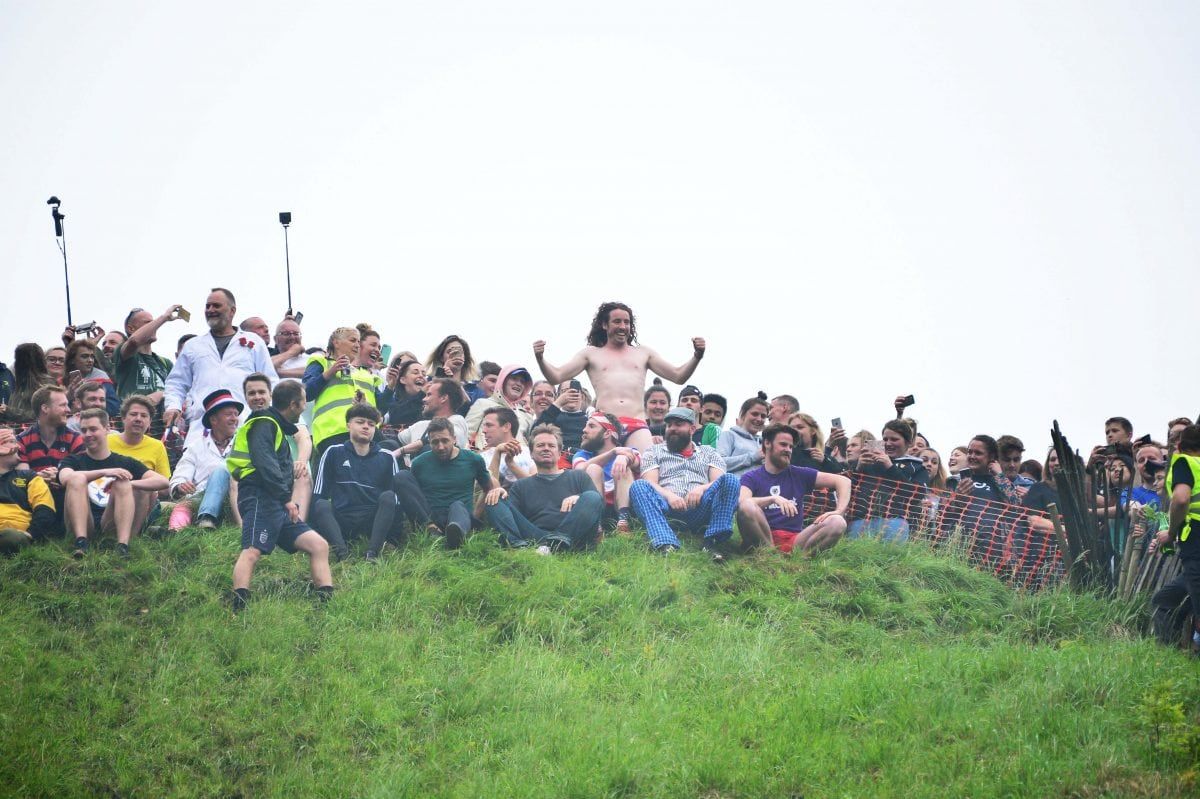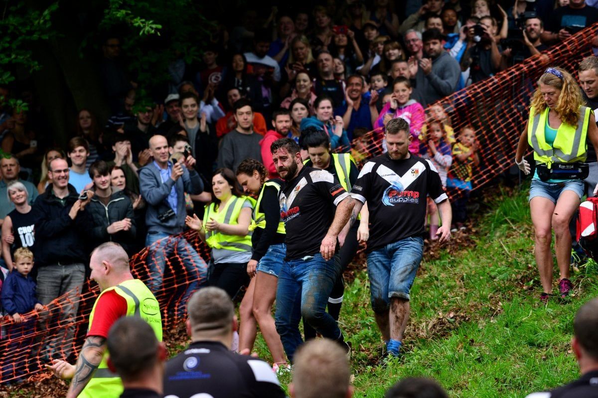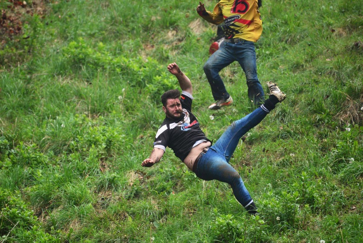 Thousands gathered to watch one of Britain’s wackiest sporting events, where runners sprint (and tumble) after a heavy cheese that goes hurtling down a steep hill at break-neck speeds.