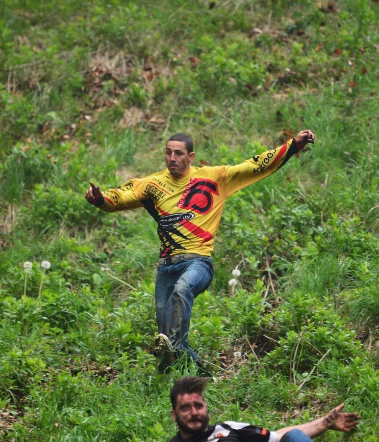 Chris, who was just 17 when he won his first event, came first in one of the five races at Cooper’s Hill at Brockworth, Gloucester, yesterday, during the annual bank holiday tradition.