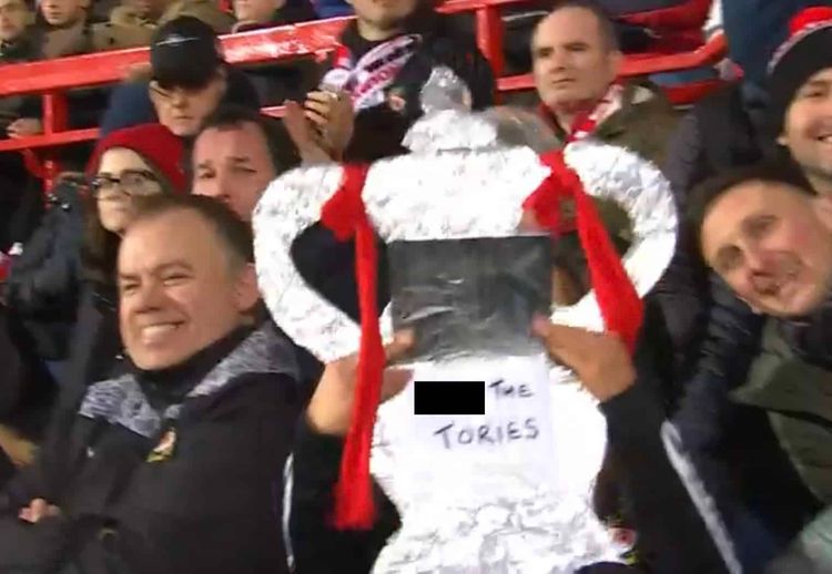 Welcome to Wrexham, indeed. Viewers tuning into BBC1 on Sunday afternoon to watch the Welsh underdogs take on Sheffield United in the FA Cup got a brief glimpse of just how residents in town feel about the Conservative Party these days.