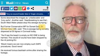 Sir Michael Take (Mickey Take) shared footage of sewage being "sensibly" dispersed at a Cornish beach on social media.